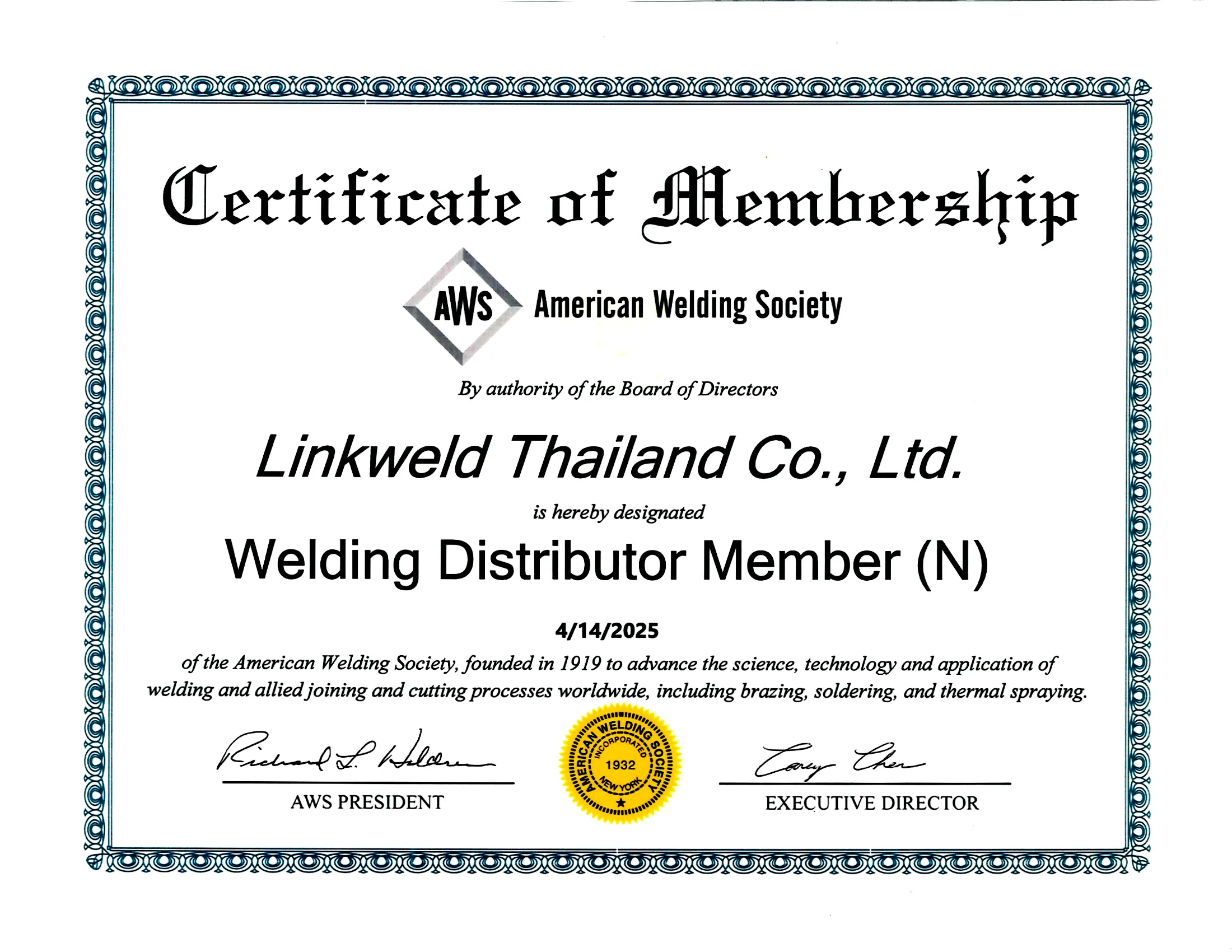 Linkweld Thailand Becomes an Official Member of the American Welding Society (AWS)