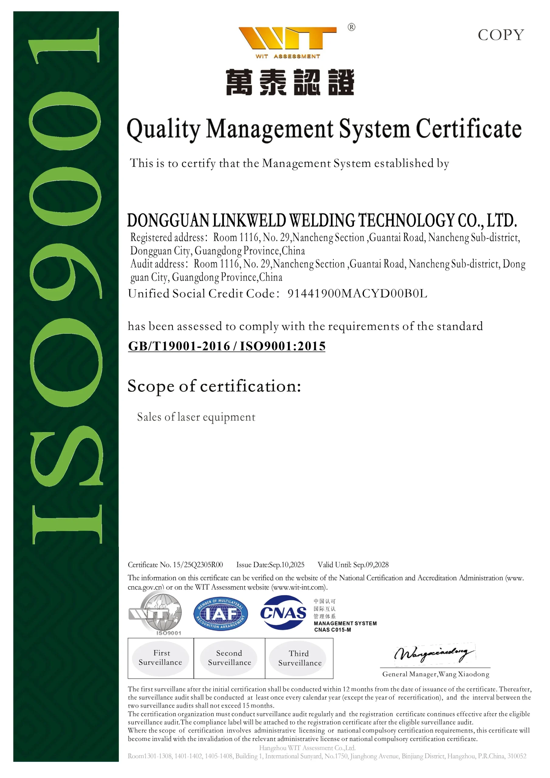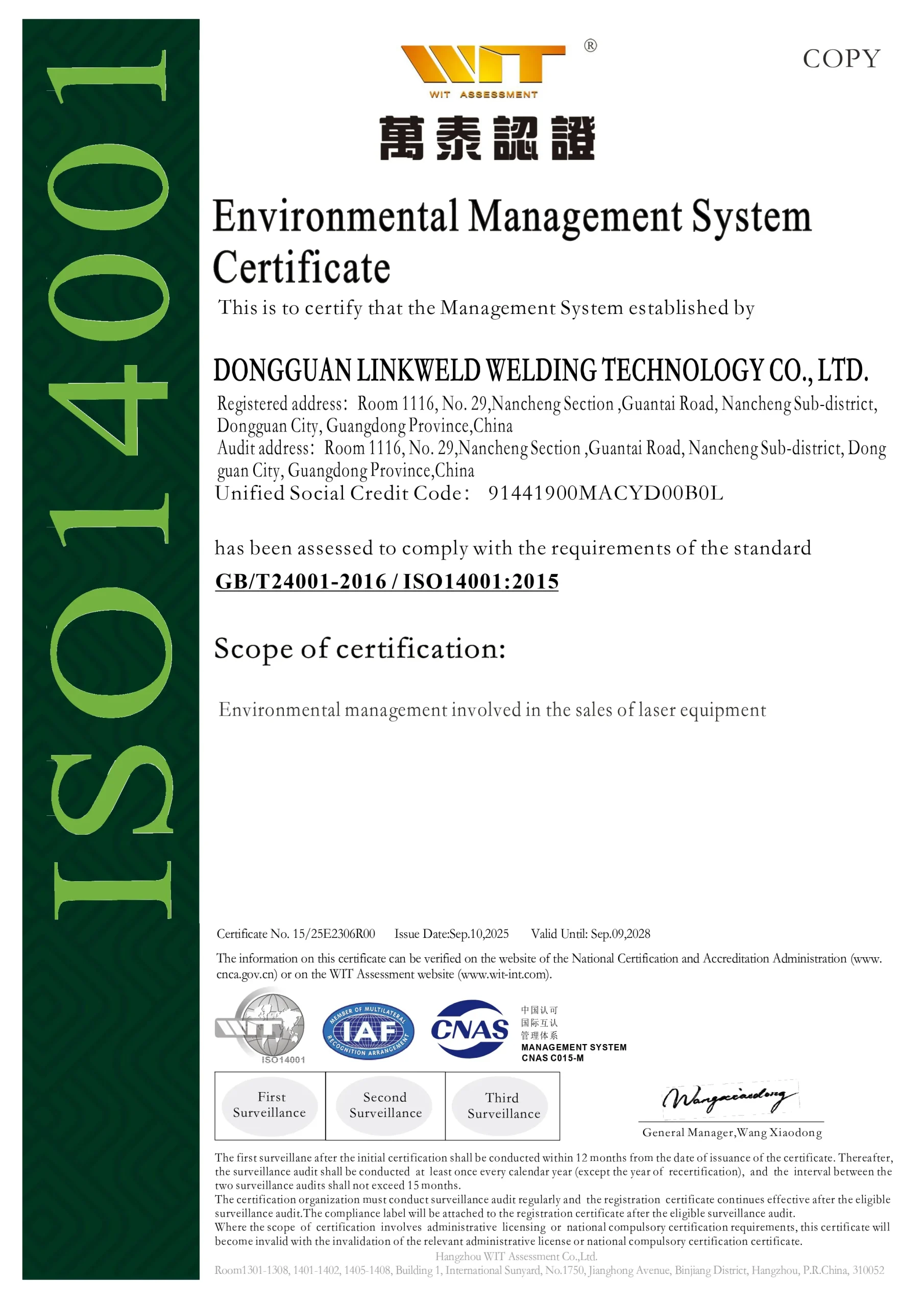Linkweld is proud to announce that we have been certified with all three major international ISO standards, including