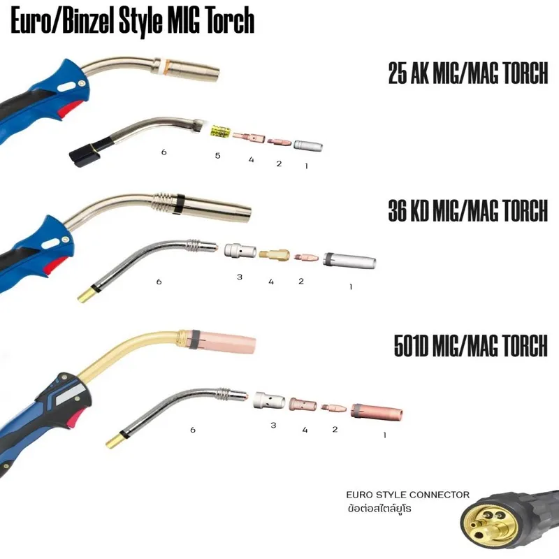 MIG Torch Euro/Binzel Style 25AK/36KD/501D