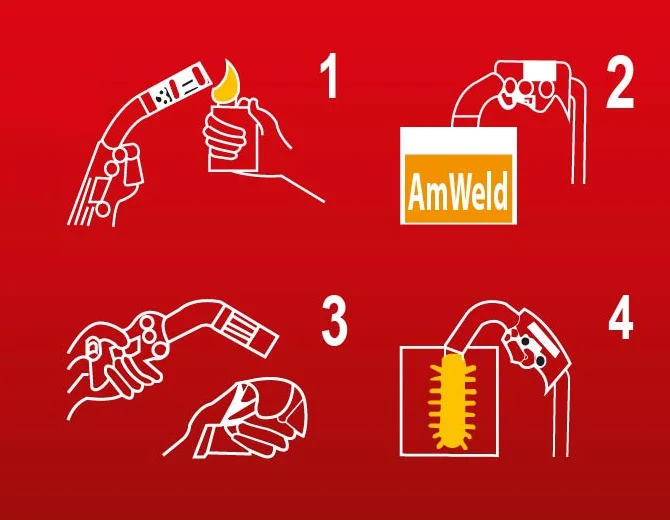 Dip the hot nozzle into the gel, when exposed to heat the gel melting, then raise the MIG torch and allowing content to flow out of the gel excess MIG torch.