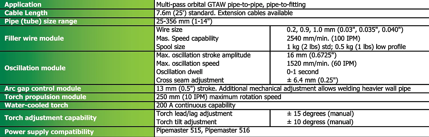 • Full function Capability [Torch Rotation, Filler Wire Feed, Electronic Arc Gap Control, Electronic Oscillation]