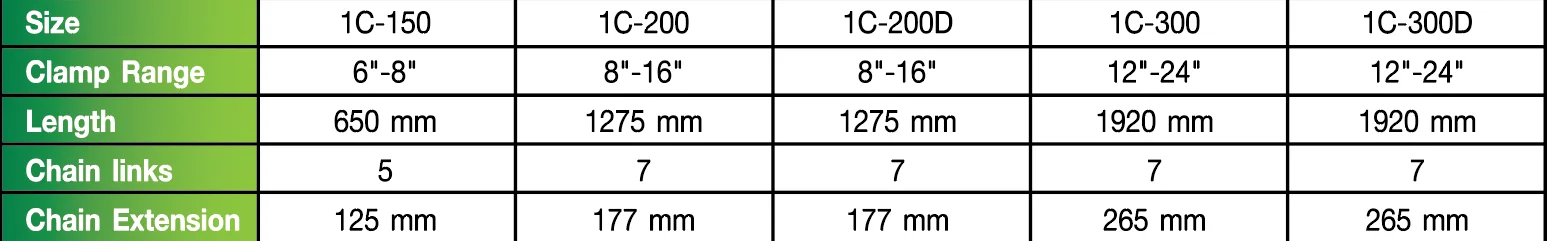 For centering and clamping of long pipes without restriction in length. Also for curved tubes, flanges, T-shaped parts etc. to pipes and tanks. Five different models available. Choice between galvanised steel or stainless steel. Great variability by simply taken-off or adding chain-links. For a ready-of-work centering chain is needed: 1 standard chain, 1 tensioner and may be additional chain-links.