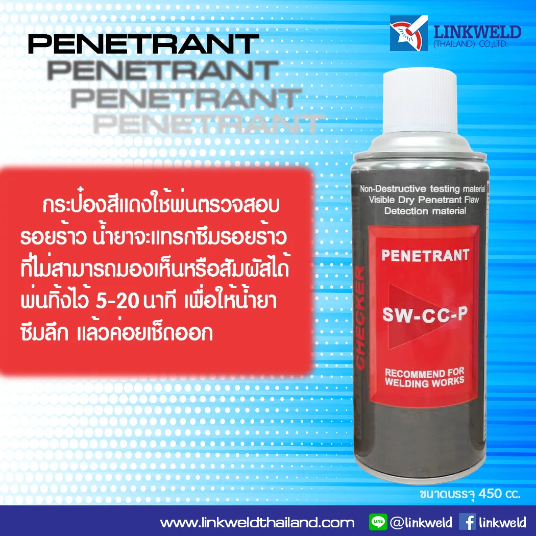 Super Welding Crack Checker Liquid penetrant test is one of the most popular Nondestructive testing (NDT) methods in the industry. When compare with to other NDT methods. This methods is economical, versatile, and requires minimal training, Liquid penetrant test check for material flaws open to the surface This fluid(Penetrant) seeps into any defects such as cracks or porosity before a developer is applied which allows the penetrant liquid to seep upwards and create a visible indication of the flaw.