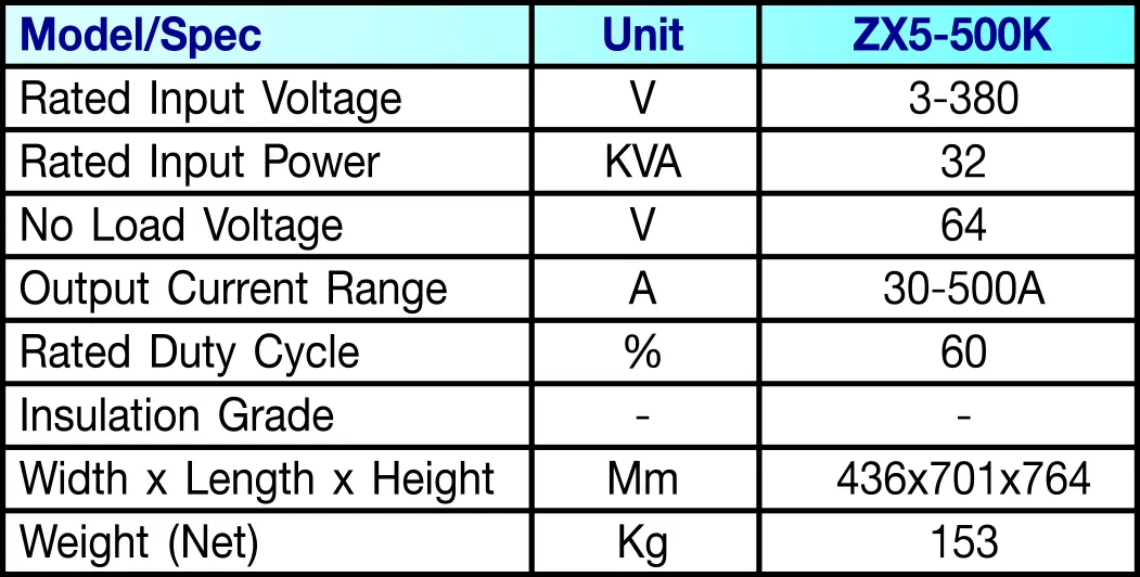 • Widely adjust current, suitable for welding low carbon steel, medium carbon steel, low alloy
