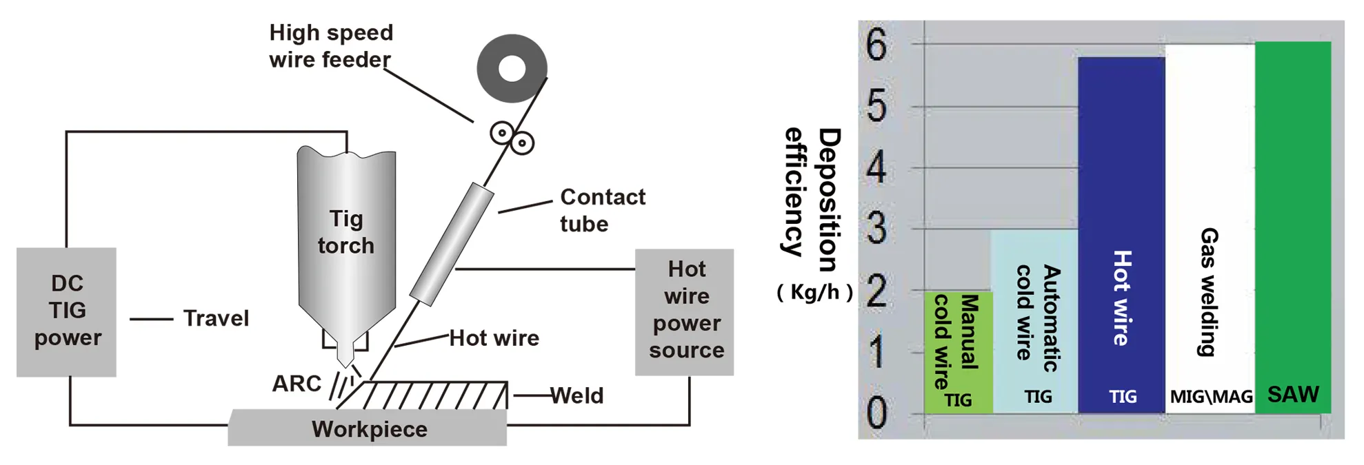 ✅ Hot Wire (wire preheating) system helps reduce heat input