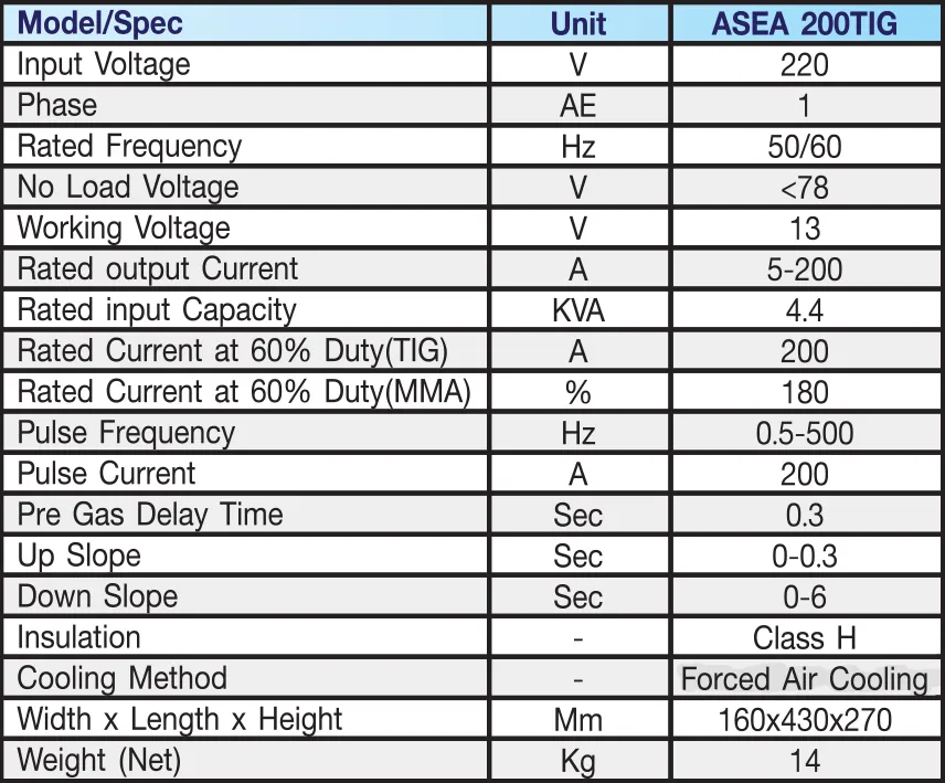 TIG Welding Machine ASEA 200TIG (Light Duty)