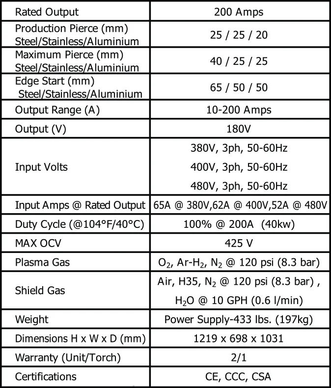 • Excellent dross-free cuts using oxygen (02) plasma on mild steel