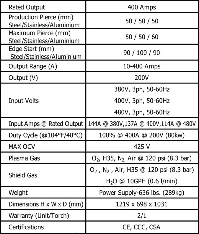• Excellent dross-free cuts using oxygen (02) plasma on mild steel