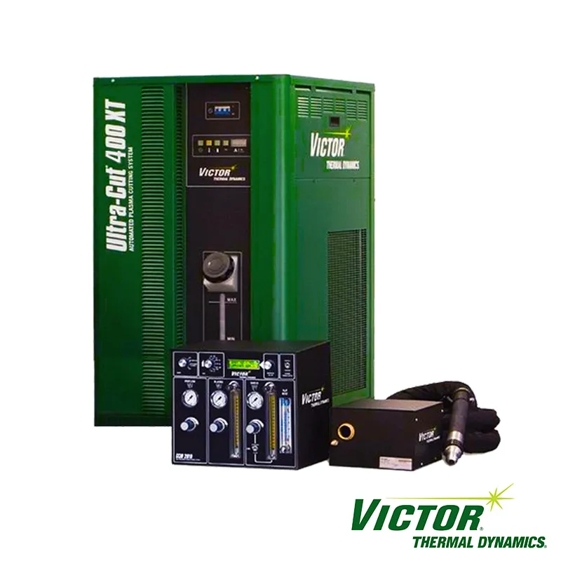 VICTOR AUTOMATED PLASMA CUTTING (ULTRA-CUT) 400XT delivers premium precision plasma cutting on mild steel and non-ferrous alloys. For non-ferrous material, select out unique Water Mist Secondary process for best in class cut quality. In addition, the Ultra-Cut systems can also be used for clean, efficient, plasma marking without having to change consumables.