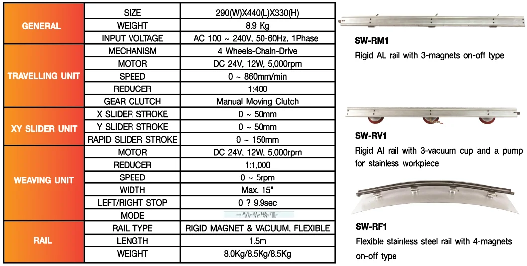 • Digital control system for setting the welding parameters including tractor speed, weaving speed and weaving width