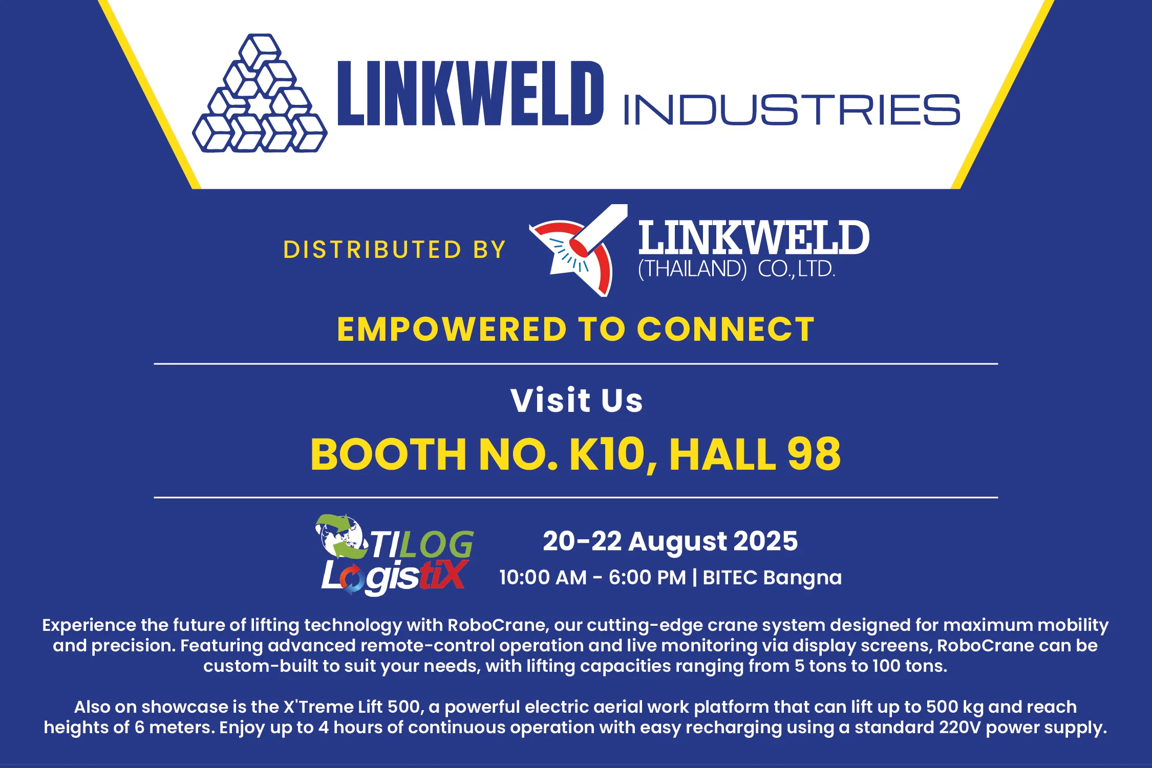 Linkweld (Thailand) Co., Ltd. would like to sincerely thank all customers who visited our booth at TILOG – LogistiX 2025 from August 20–22.