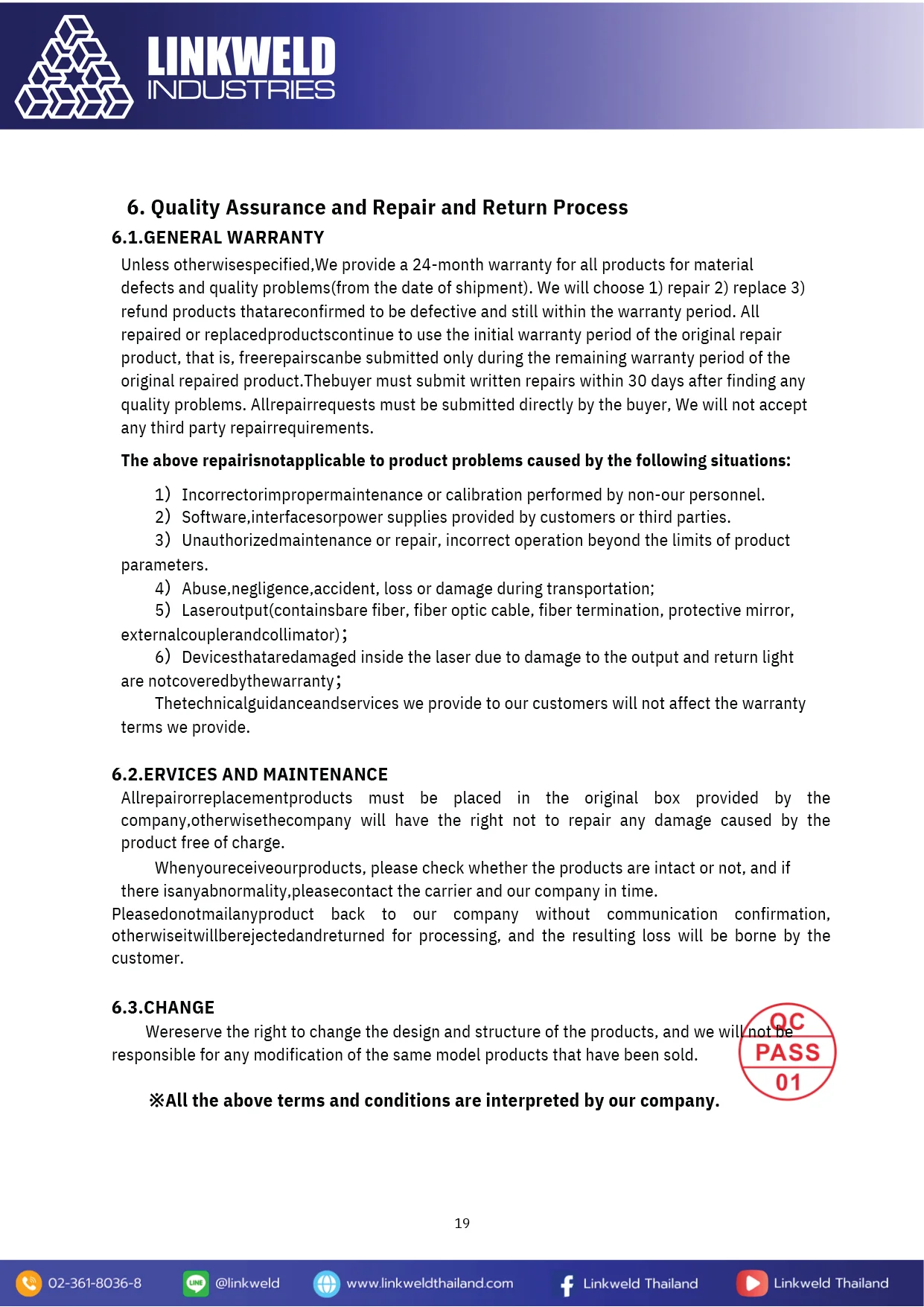 บริการหลังการขายและประกันสินค้าต่างๆ