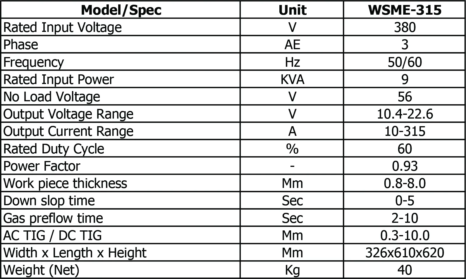 เครื่องเชื่อมอลูมิเนียม TAYOR WSME 315 Features: