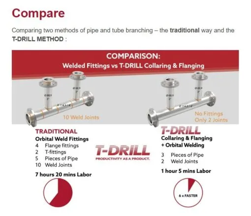 จุดเด่นของผลิตภัณฑ์ของเรา: ลดต้นทุน – ปรับปรุงคุณภาพ – เพิ่มผลกำไร Pipe joints Comparison: Traditional vs T-DRILL method